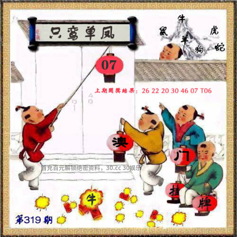319期挂牌【只鸾单凤】 解释:单凤解单数鸡蛇兔牛羊猪,挂:07 爆:牛。 综合:鸡蛇兔牛羊猪鼠 |